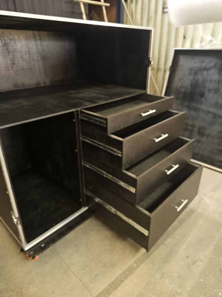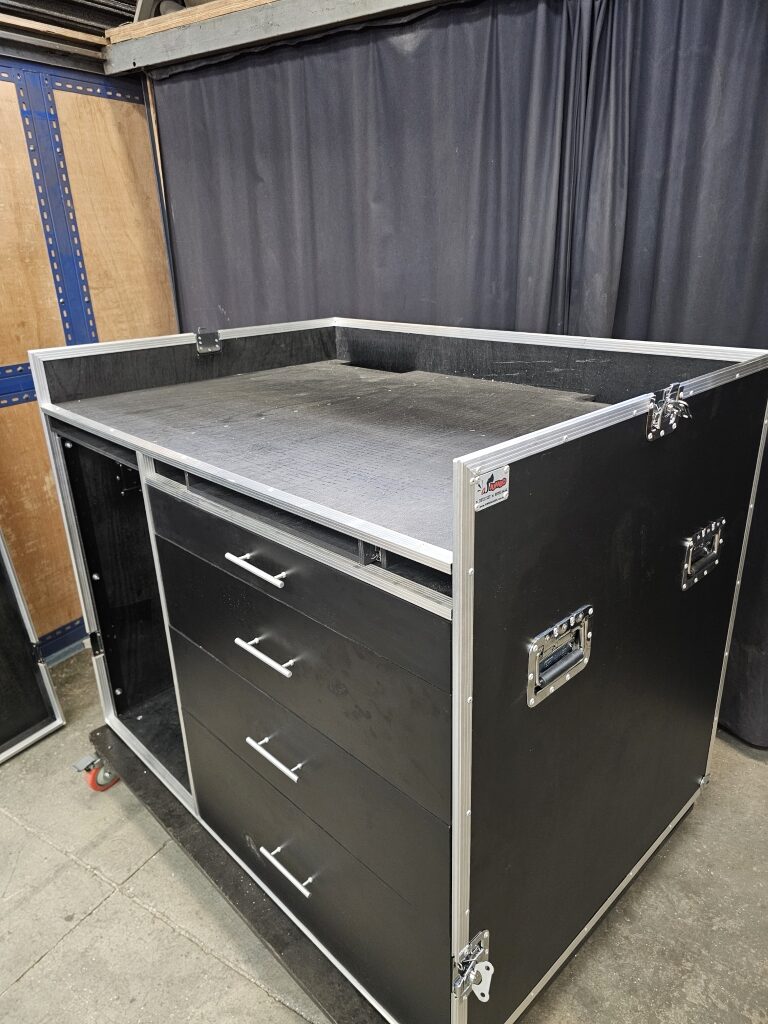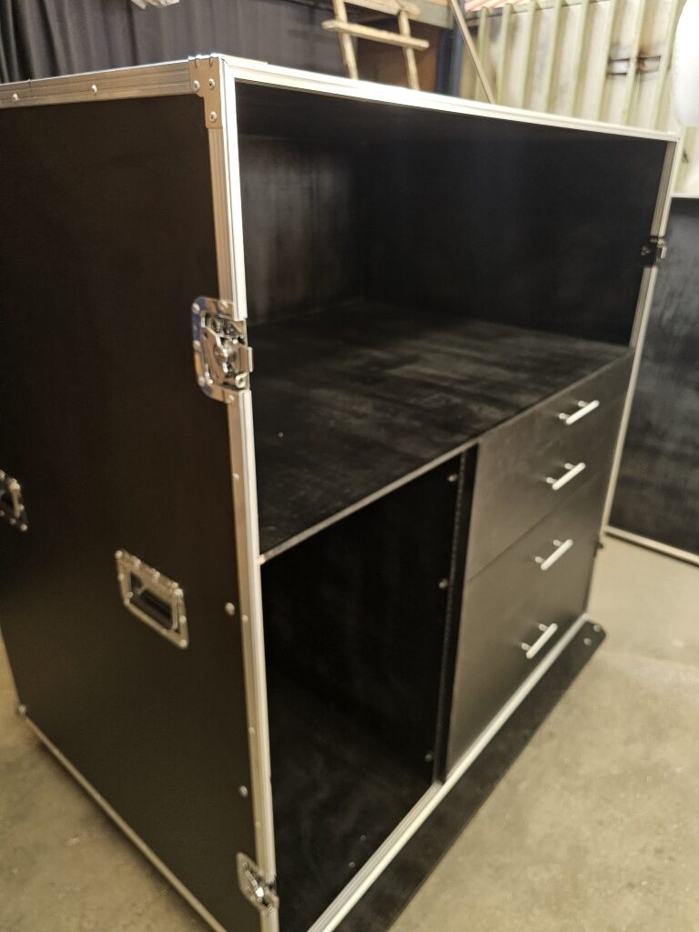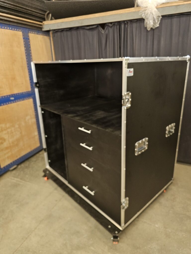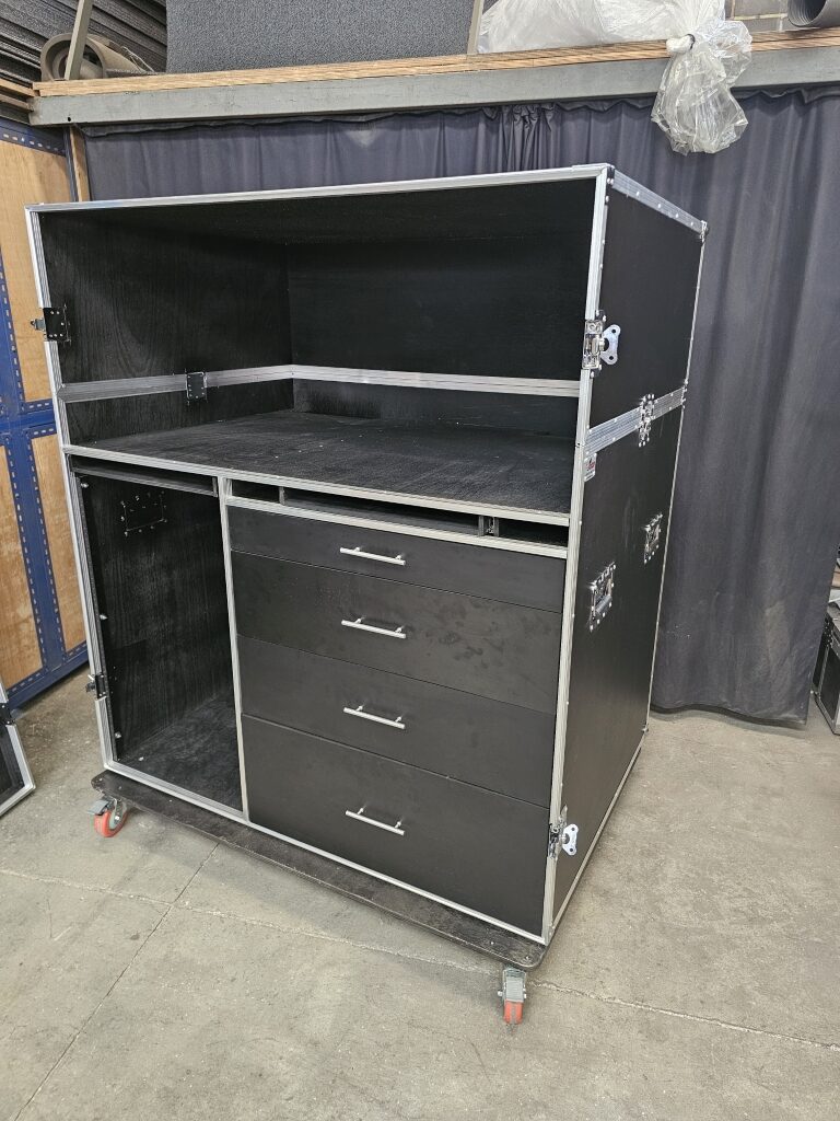Rack 2U com gaveta, plataforma e mesa de som